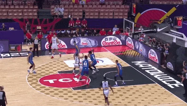 比赛的第一节,阿夫迪亚抢断一条龙,杀到前场快速反击上篮得手。